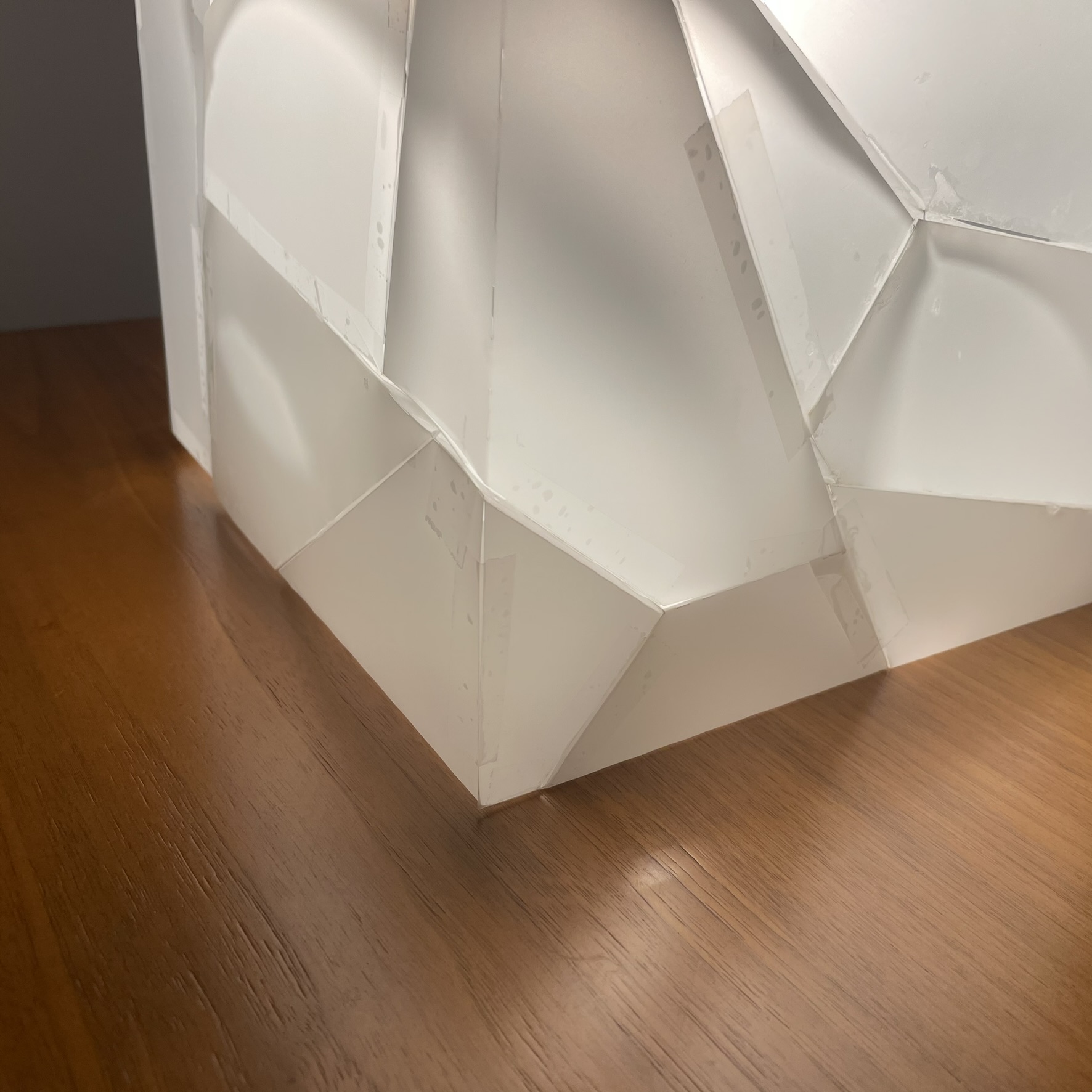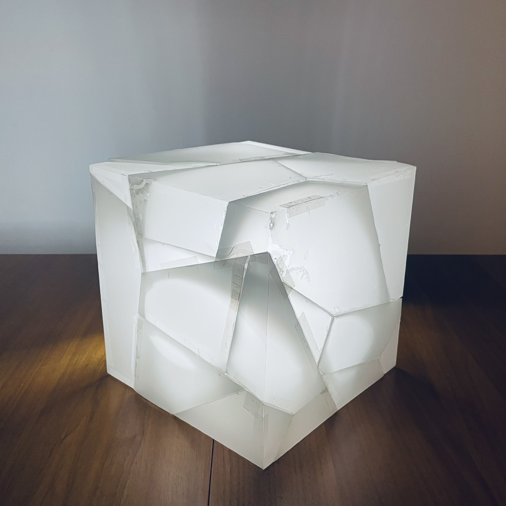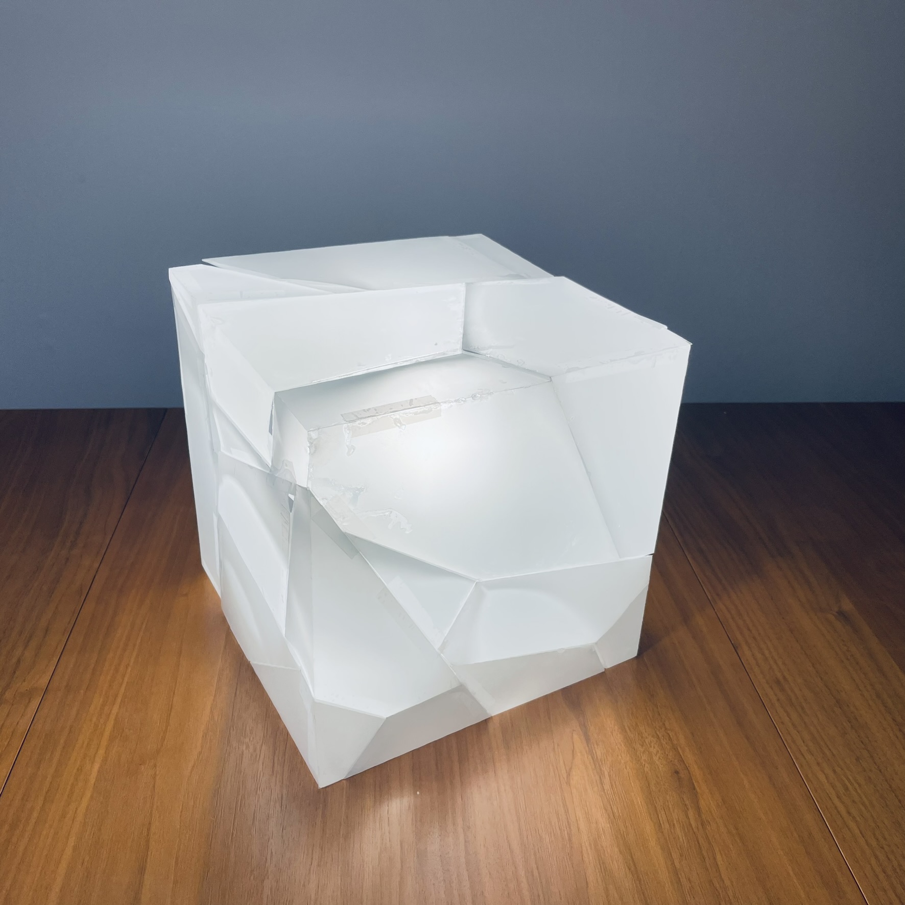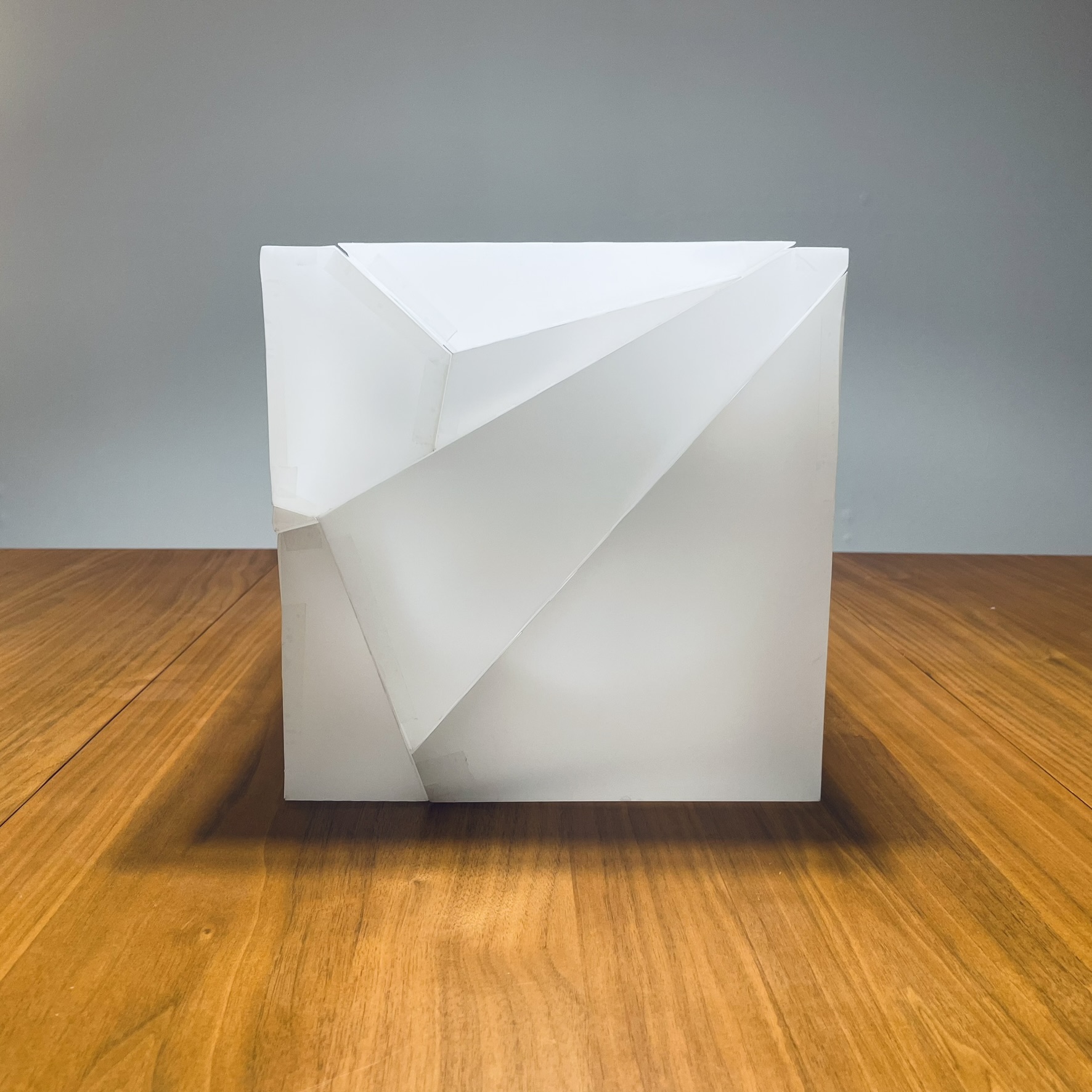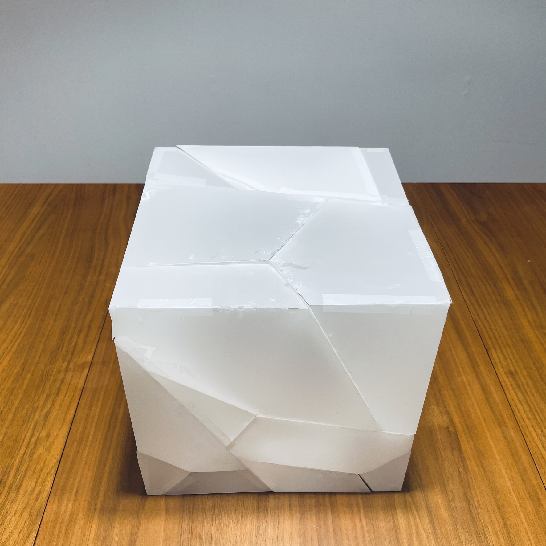 Cutting (sub-dividing) object is commonly seen in daily life, however, cutting can be complicated with constraints. In this study, an algorithm is developed to cut a three-dimensional box into pieces with two constraints: 1) any vertex has three valencies, that is, three edges are connected to each vertex; and 2) all surfaces are planar surfaces after cutting. After cutting, the second phase of this application is to unfold every piece and generate the cutting files for fabrication. The algorithm is to unfold the polysurfaces on the zero plane without overlapping the unfold surfaces. Also, cutting file have two different line types: cutting lines and folding lines so that fabricator can put them back together. *Please forgive all the tapes, since these are still study models.