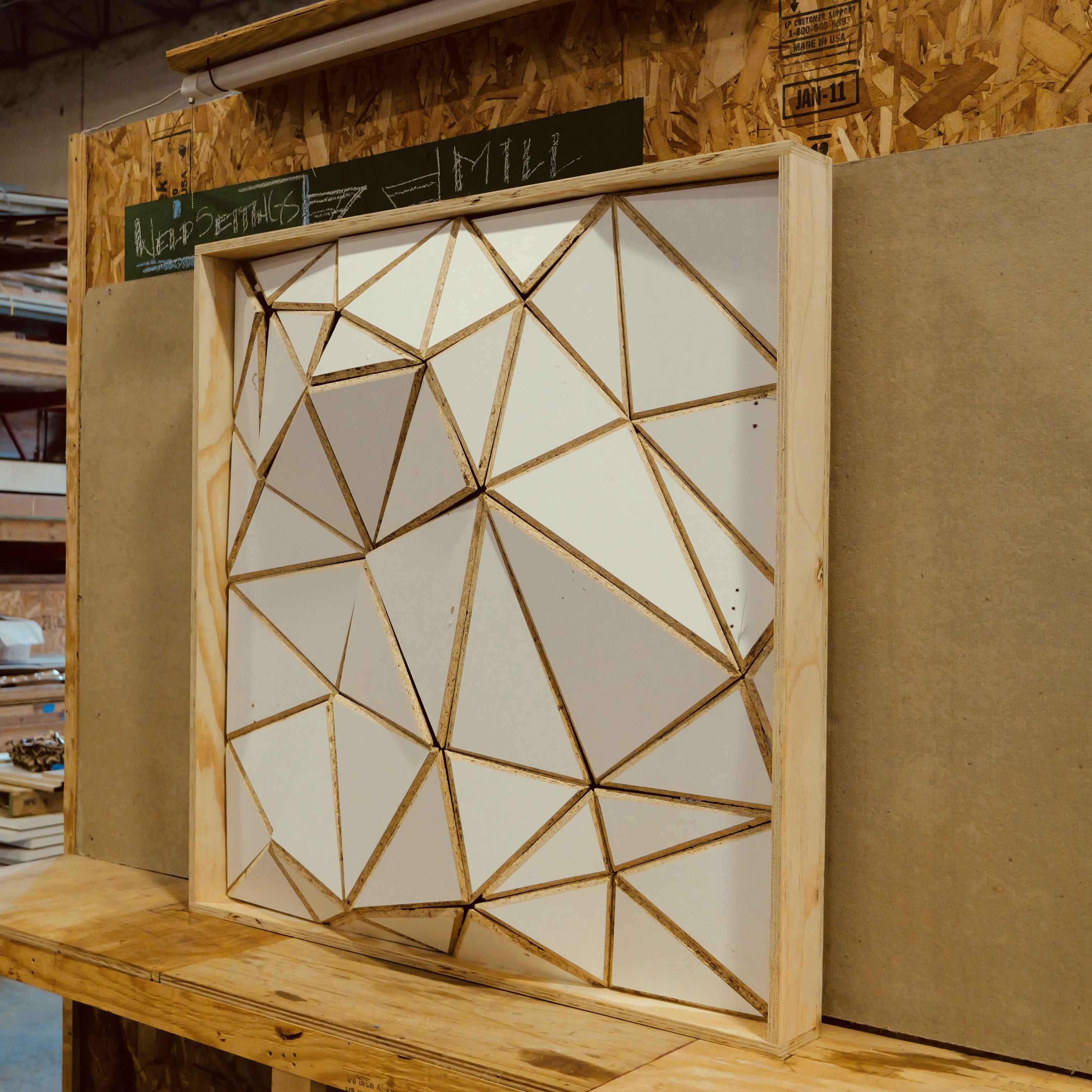 Design and Build Studio has been the core of architectural education at the University of Kansas, which is a very practical process, that is, students proposed designs and built them. Several fronts of Design Build Studios are given at the KU, some focuses on architecure procatice such as Studio804, some focuses sustainability such as Solor Decathlon Group, some focus on mobile architecture and some focus on environmental design. This studio is focusing on digital fabrication where students are given a task to utilize the materials recycled from the School of Architecture and Design at the KU to fabricate high-degree NURB surfaces. The recycled materials are various, including drafting desktops, table legs, roofing metal meshes and so forth. The major mission for students is to design a fabircation system which can be applied to any NURB surface, and most important of all, they have to incorporate the recycled materials. In the end, five teams delivered the five projects, shown as below.
