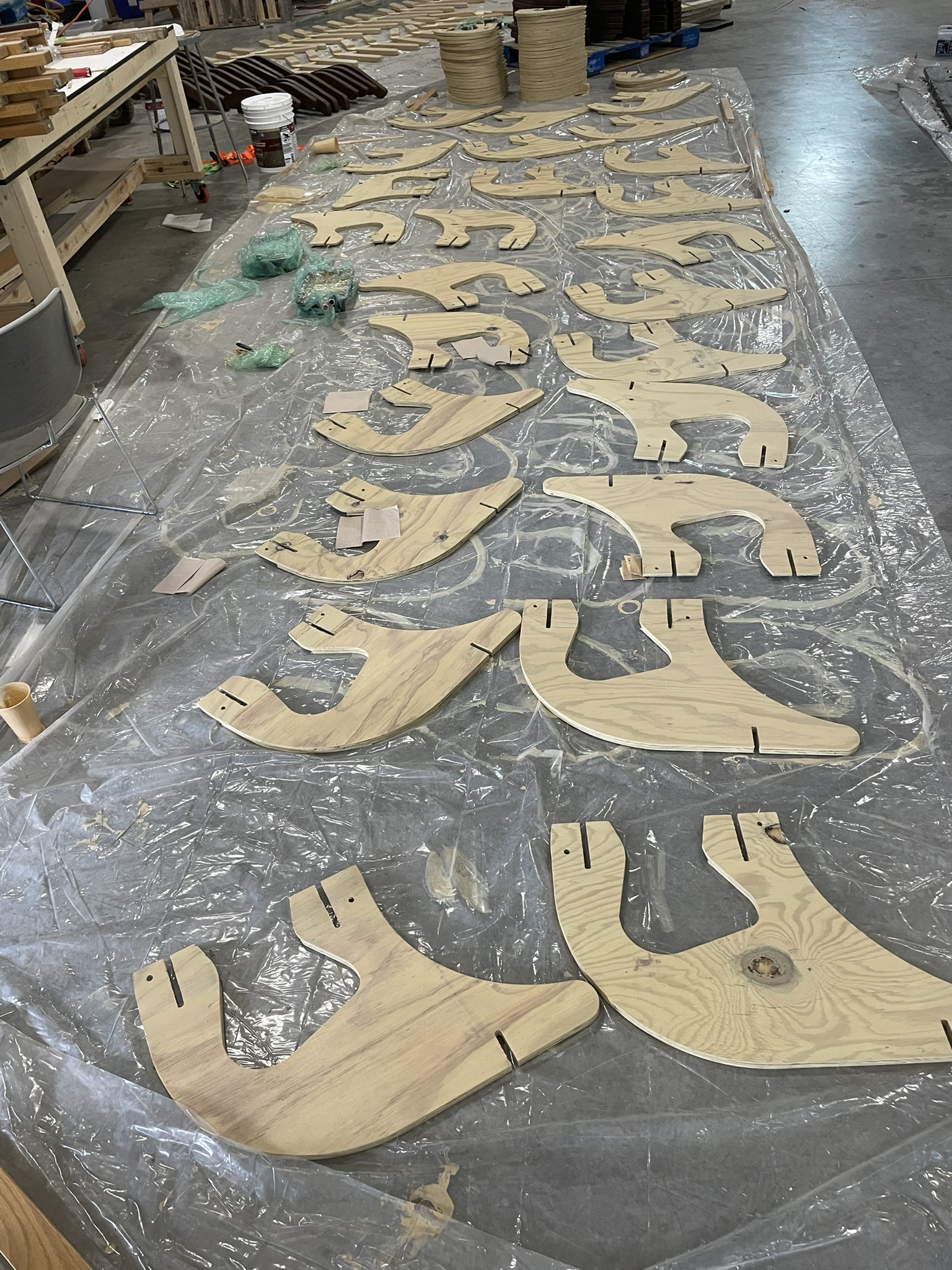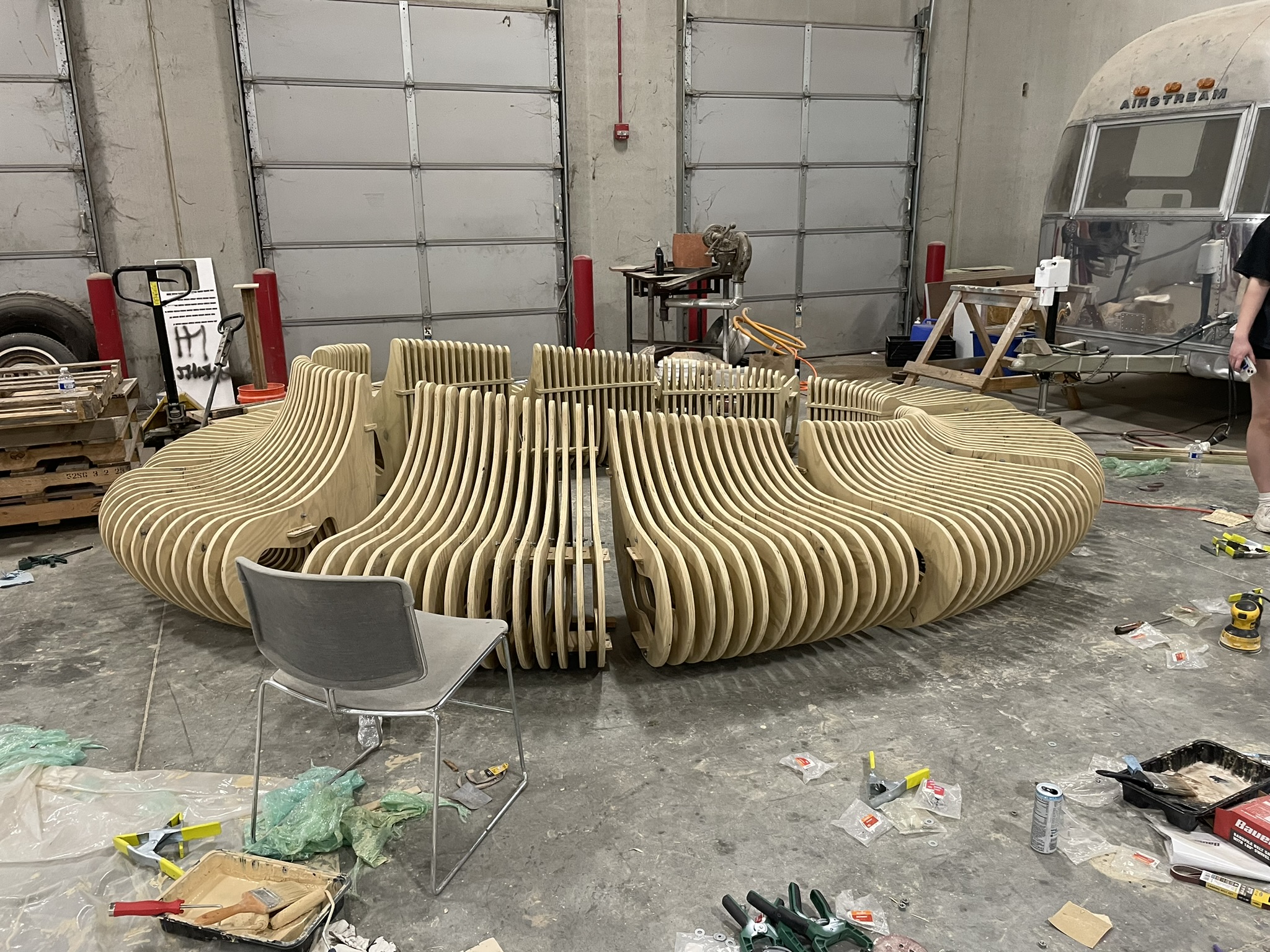 Ostinato Ellipse is designed and fabricated by three junior students with the concept of two imperfect circles responding to the circular fountain in the courtyar. Only one kind of material is used in this project which is 4X8 treated plywood board for durability.