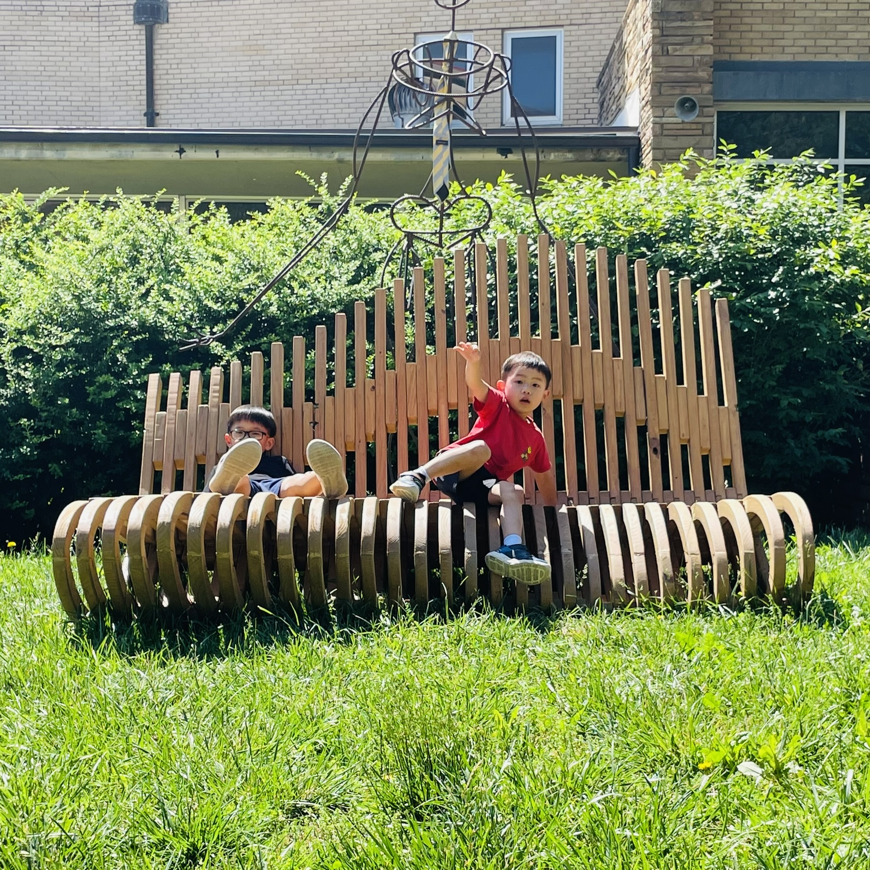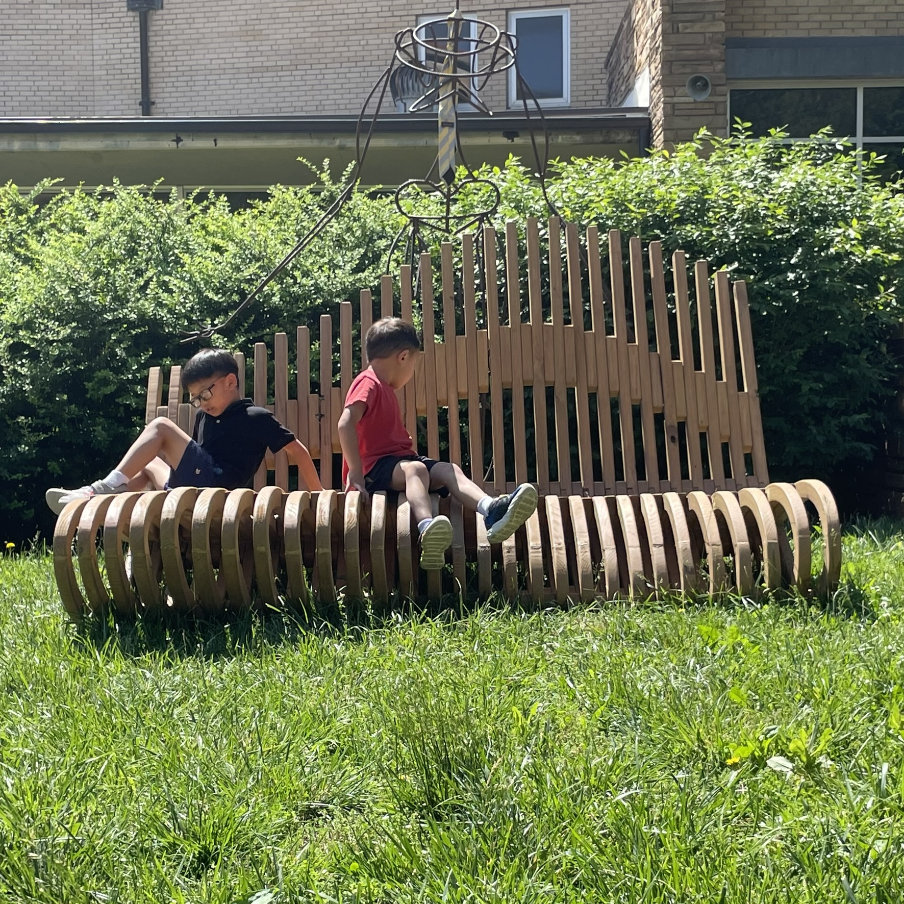 “Three Sines” ia aiming to interpreting sound waves into physical object, with the function of a seating space. The work is made of 2X12 treated wood board.
