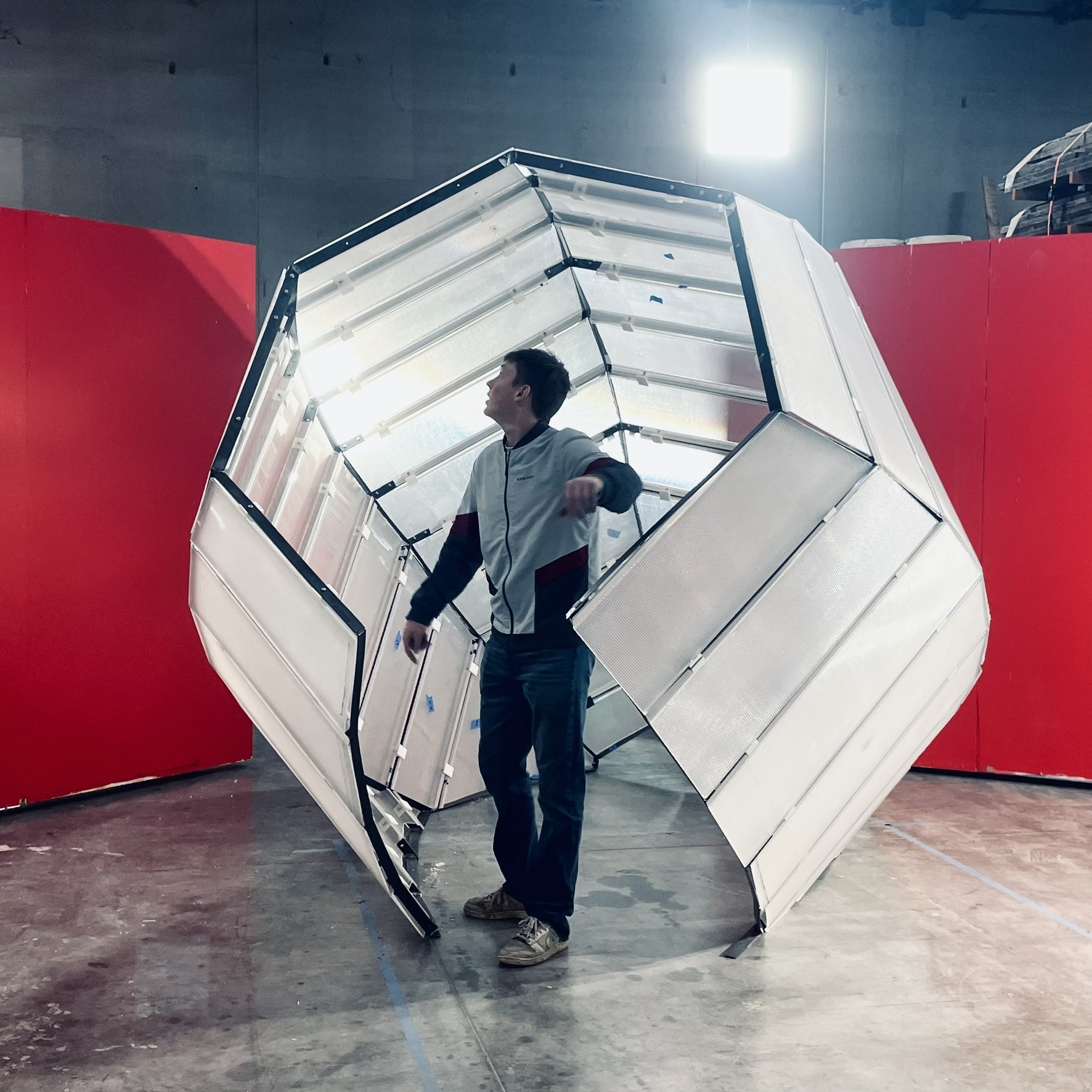 "Empty Chrysalis" is an art project for celebrating women artists and their braveness against the bias, unfair and discriminated environment curated by the Spencer Museum of Art in Lawrence Kansas. This project celebrates advancements toward gender equity and honors the achievements of women artists who have courageously forged a path despite facing inequities. Visitors are invited to enter the installations and experience the light filtering through the chrysalis during the day, immersing themselves in the essence of transformation. At night, internal lighting makes the installations glow, enhancing their visual impact and illuminating the surrounding area.