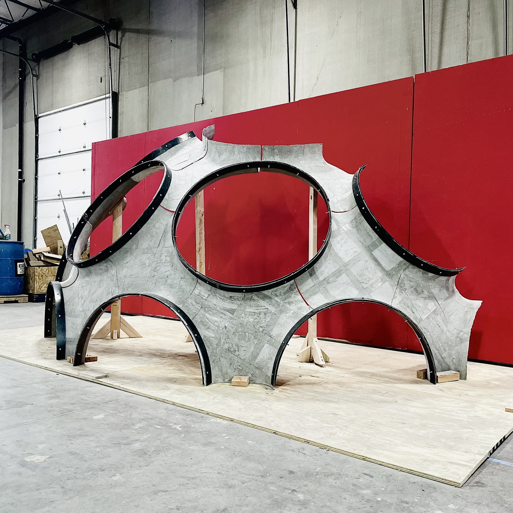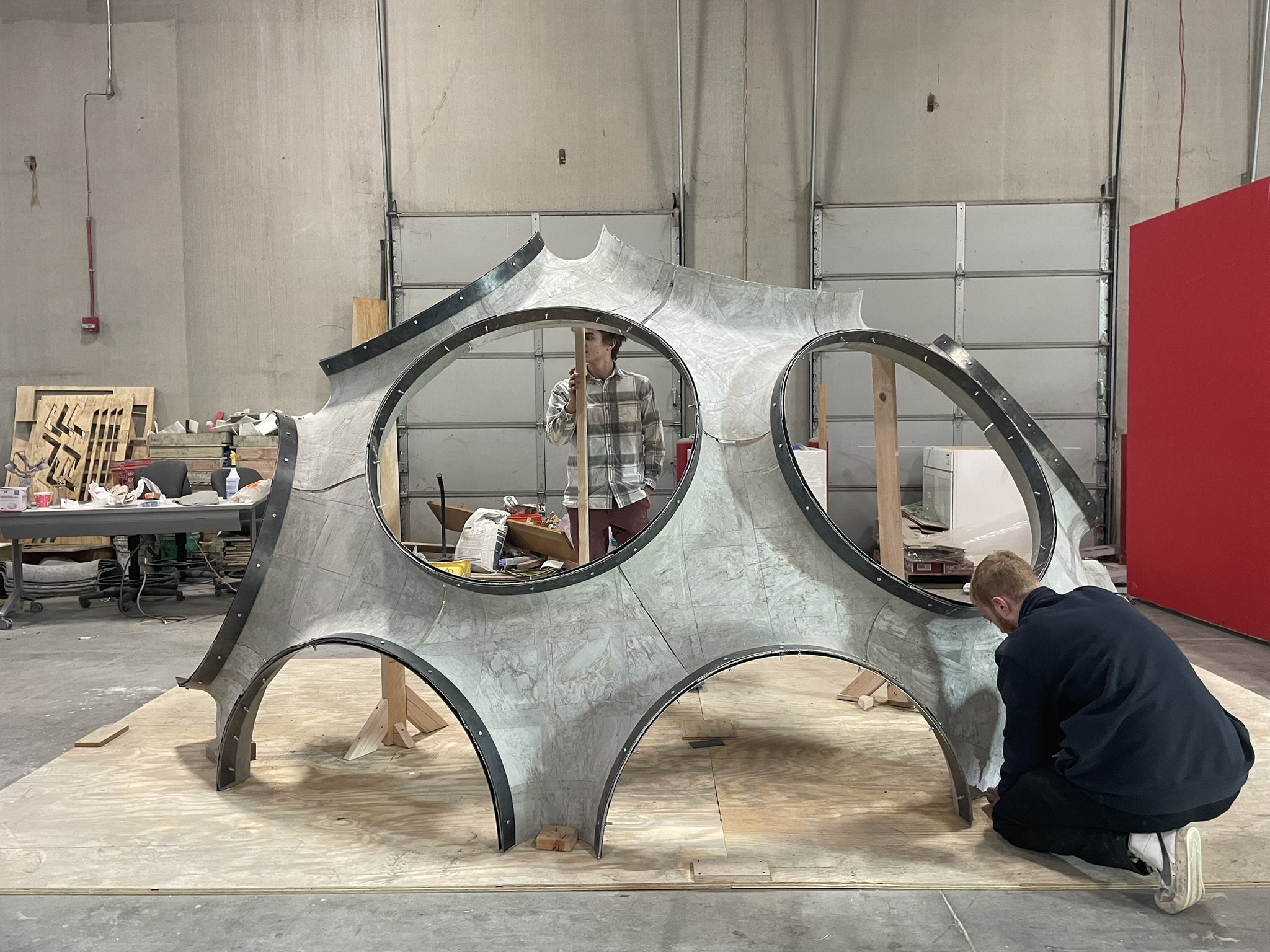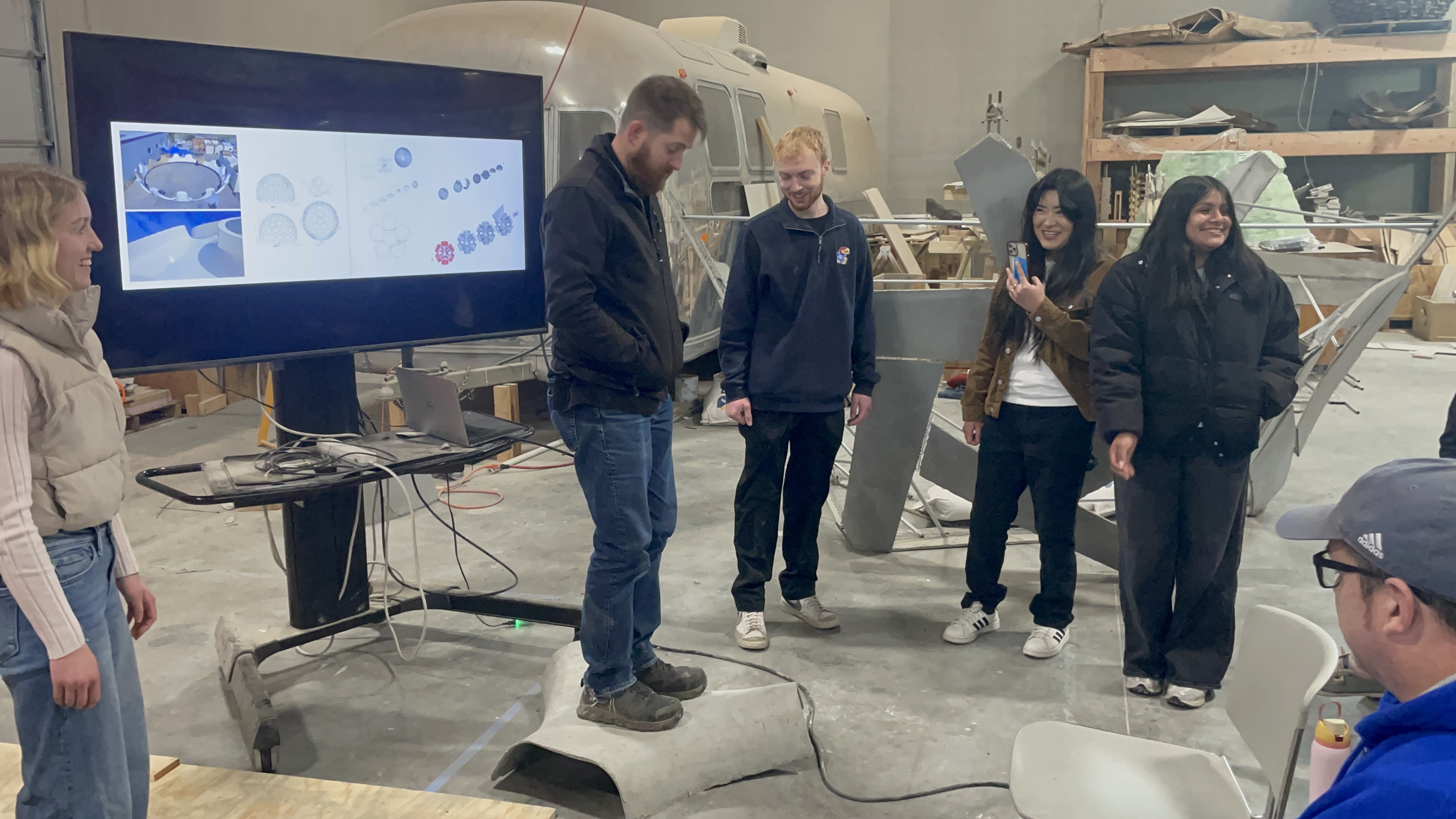 This project was developed in ARCH 509 DesignBuild (Fall 2025) as an intensive exploration of ultra-thin concrete construction, grounded in a close study of Buckminster Fuller’s Fly’s Eye Dome. Over an eight-week period, a team of four students investigated Fuller’s geometric logic, structural efficiency, and modular thinking, translating these principles into a contemporary design and fabrication system. The central constraint of the project was strict and uncompromising: all concrete components were required to be thinner than 1/8 inch.